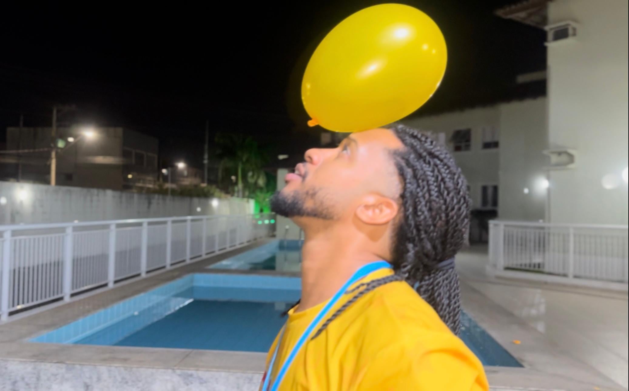 O zagueiro Jabson, do Bavi, é o Tio Paçoca nas festas (Foto: Ana Carolini Mota) Um zagueiro que se divide entre os gramados e o trabalho de recreador em festas. É assim que Jabson Gomes alimenta um sonho de garoto e ainda mantém a renda da família.