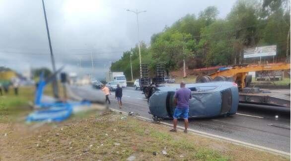 • Carro capota, atinge ponto de ônibus e deixa 2 mortos em Cariacica