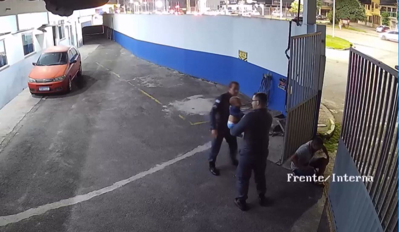 Bebê Heytor foi salvo pelo cabo Valli no último domingo (01). Foto: Reprodução/ TV Vitória Um vídeo gravado por câmeras de segurança mostrou o salvamento do bebê Heytor, que chegou engasgado ao Comando de Polícia Ostensiva Especializado (CPOE), no bairro Hélio Ferraz, na Serra, na noite de domingo (1º).