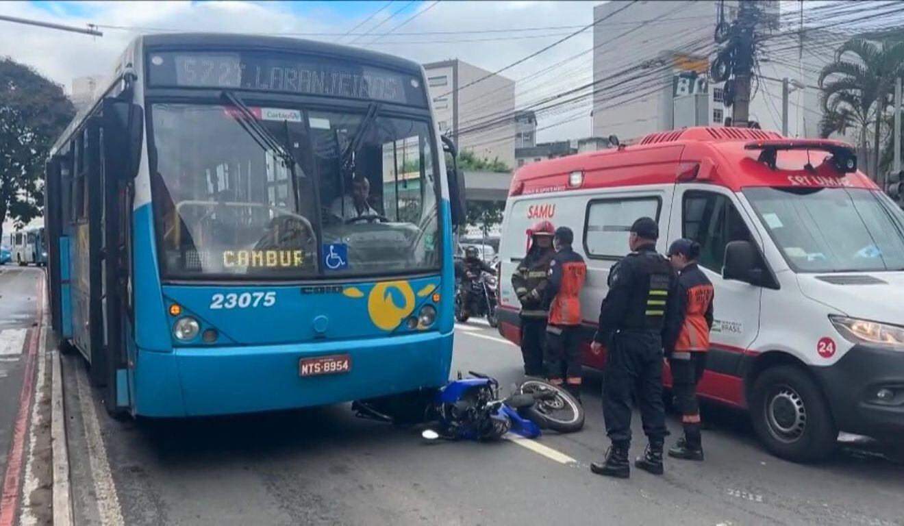 Vídeo mostra motociclista e garupa caindo debaixo de ônibus em Vitória