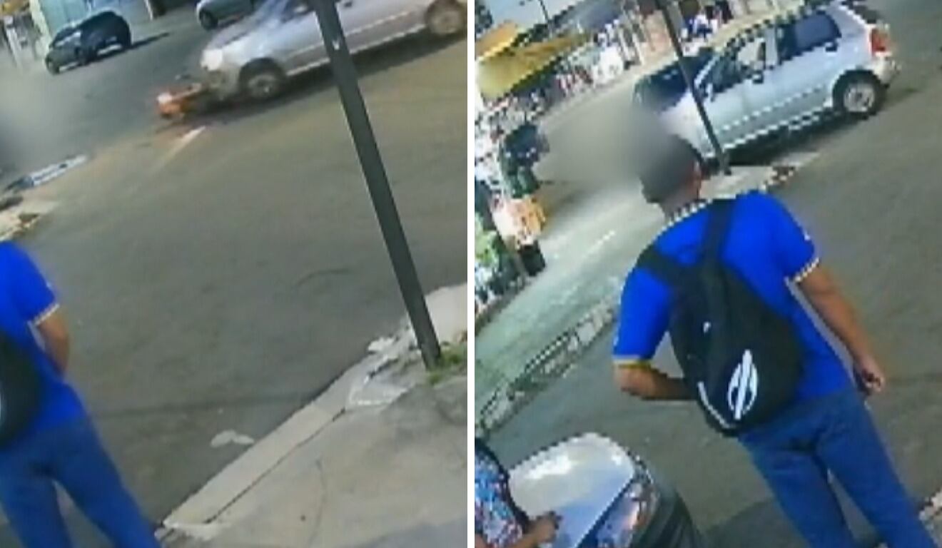 Foto: Videomonitoramento Um motociclista ficou ferido após se envolver em um acidente com um carro, na tarde de sexta-feira (2), no bairro Jardim Colorado, em Vila Velha. A colisão aconteceu na principal avenida da região e foi registrada por câmeras de segurança.