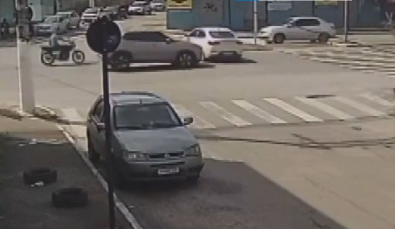 Carro branco saiu de via lateral pela contramão e colidiu com moto na Carlos Lindenberg. Foto: Reprodução/ TV VitóriaCarro saiu de...