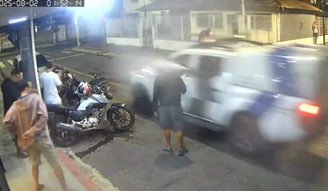 Foto: Reprodução TV Vitória Um policial militar foi flagrado utilizando spray de pimenta contra frequentadores de um bar no bairro José de Anchieta, na Serra, no sábado (2). A abordagem aconteceu com o veículo da corporação ainda em movimento e foi registrada por moradores.