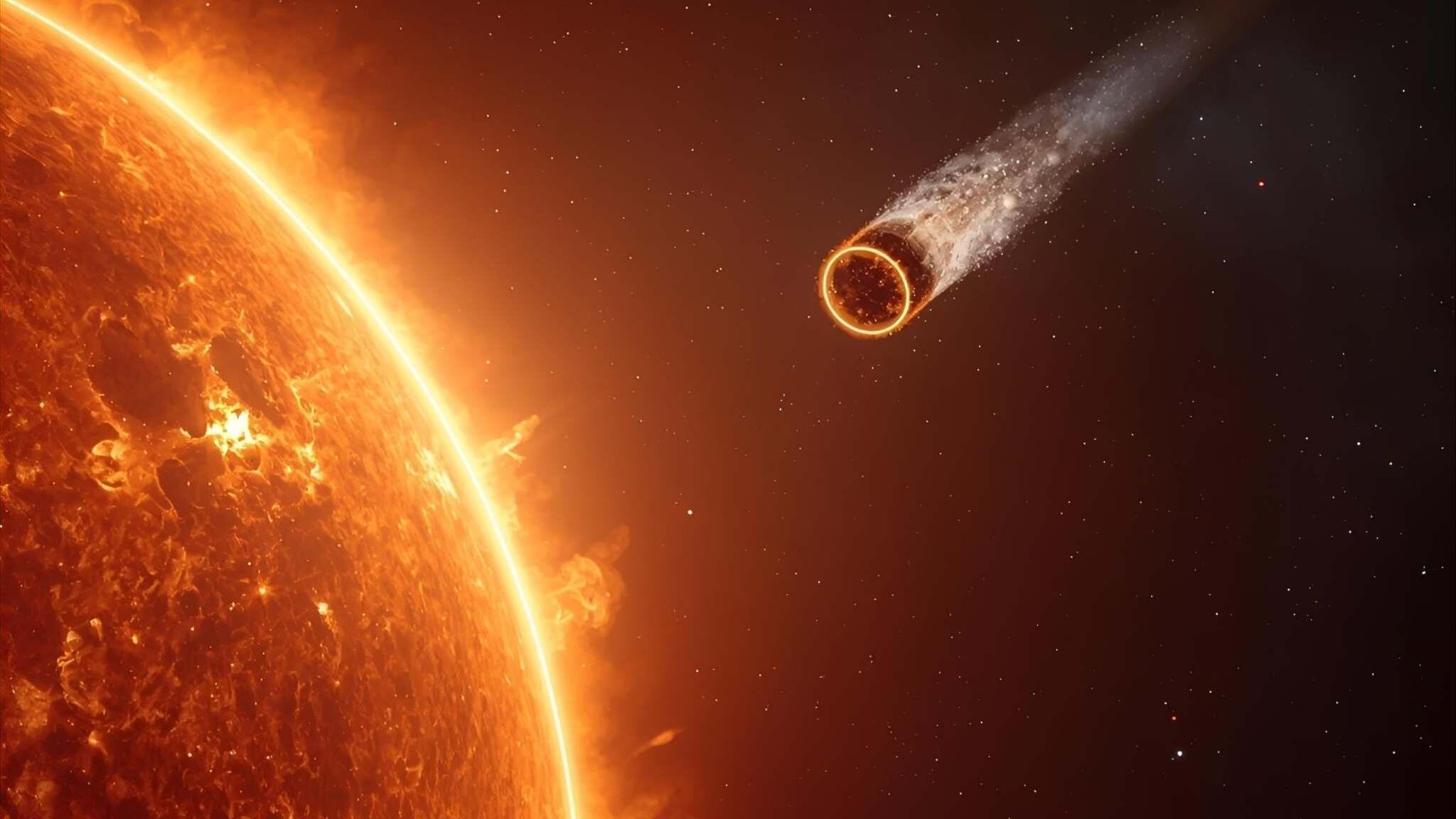 Durante o periélio, o núcleo do cometa recebe a maior radiação solar, provocando sublimação rápida do gelo em gás. Esse processo forma a coma, a nuvem brilhante ao redor do núcleo, e a cauda característica que ilumina o céu noturno. Apesar do intenso calor, o cometa permanece a uma distância maior que Mercúrio, reduzindo drasticamente o risco de destruição. Pequenas fissuras podem ocorrer em regiões frágeis do núcleo, mas a integridade geral deve ser mantida.