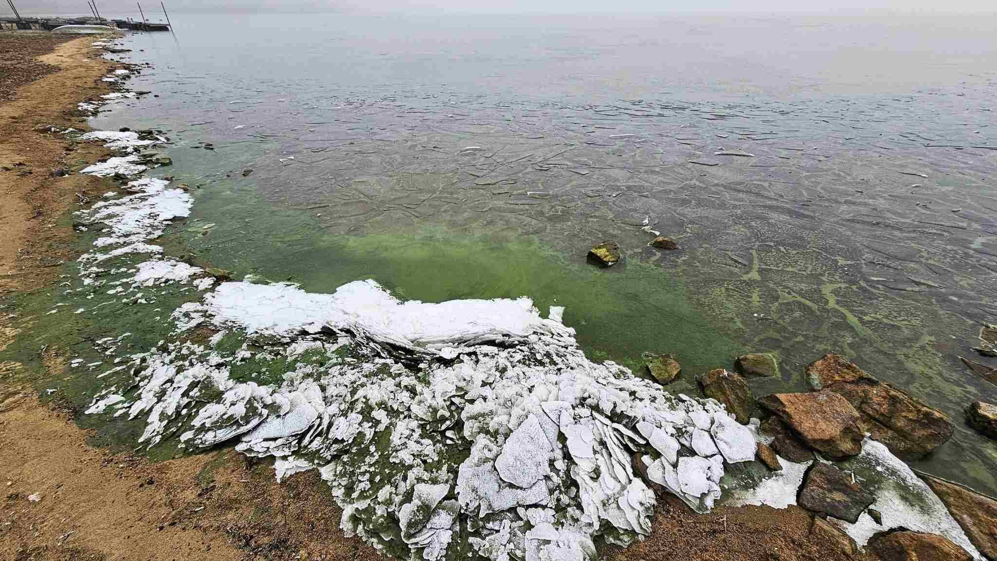Gelo verde no Lago Lipno revela cianobactérias mesmo no inverno rigoroso