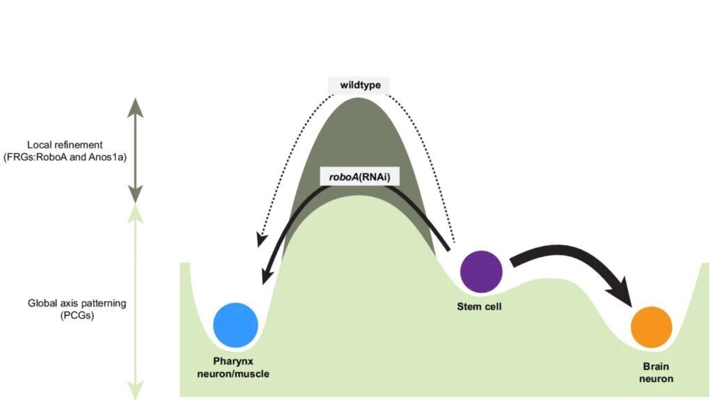 RoboA impede que células-tronco localizadas no cérebro ativem programas típicos da faringe, principalmente ao modular a atividade de FoxA, um fator de transcrição determinante para esse tecido. Quando FoxA é desativada, ocorre o efeito inverso: células da faringe passam a gerar neurônios característicos da cabeça.
