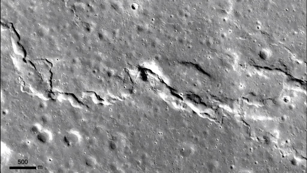 Diferentemente da Terra, a Lua não possui placas tectônicas móveis. Mesmo assim, ela sofre tensões internas. À medida que seu interior esfria ao longo de bilhões de anos, o satélite passa por um processo lento de contração global. Esse encolhimento gera compressões na crosta, formando escarpas e cristas, como se a superfície estivesse “se enrugando”.
