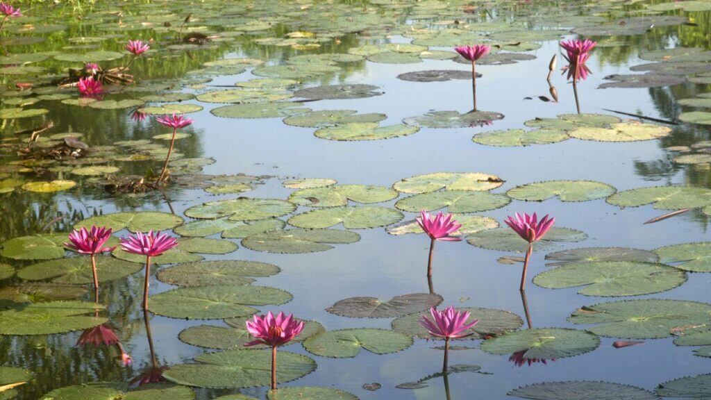 Além disso, a vitória-régia filtra nutrientes e sedimentos com suas raízes submersas. Essas estruturas retêm partículas em suspensão e favorecem processos naturais de depuração da água. Desse modo, a planta contribui para ambientes aquáticos mais estáveis.