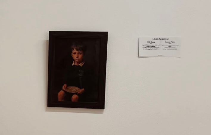 Um artista conseguiu pendurar discretamente uma imagem gerada por inteligência artificial no Museu Nacional de Cardiff, no Reino Unido. A impressão, que ganhou o nome de Prato Vazio, mostra um menino vestindo uniforme escolar e segurando um prato de comida.