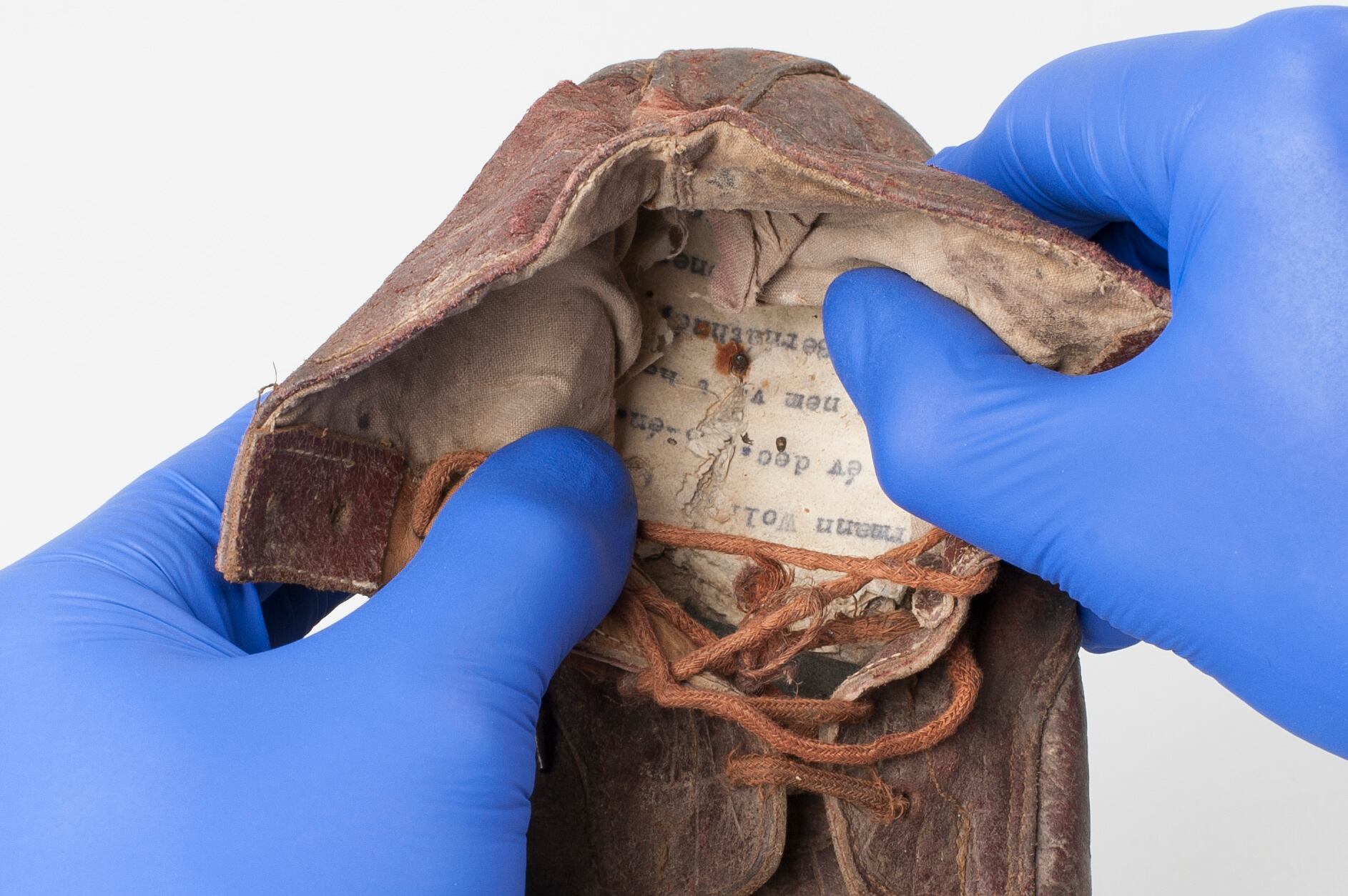 A restauradora Elżbieta Cajzer, que encontrou o bilhete, contou que o papel estava escondido sob a palmilha. “Quando abrimos o sapato, encontramos um pequeno documento. As letras mal resistiram ao tempo”, disse. O número 5710 ajudou a identificar o menino ao ser associado a uma mala pertencente ao pai, já catalogada no museu.