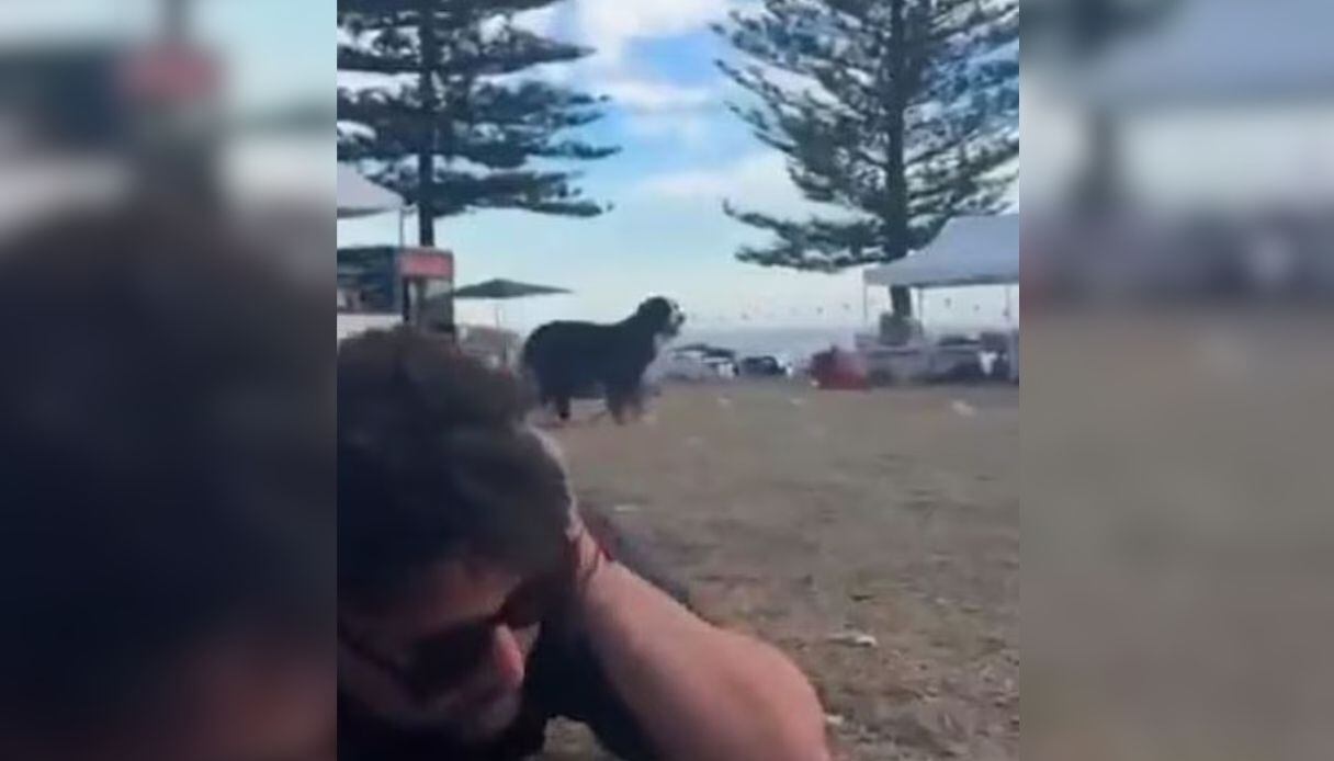 Imagens divulgadas nas redes sociais mostram uma cadela da raça boiadeiro de Berna permanecendo ao lado do corpo de seu tutor após o ataque a tiros ocorrido durante uma celebração de Hanukkah em Bondi Beach, em Sydney, na Austrália, no domingo (14).