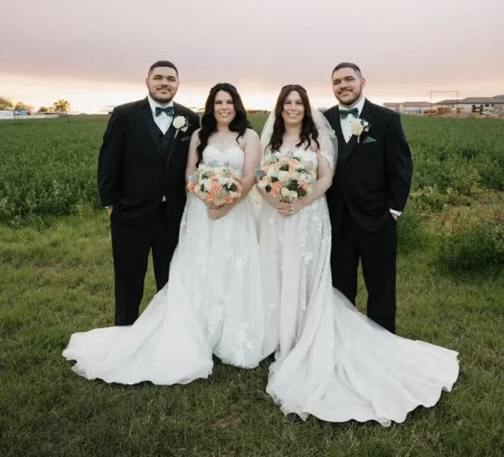Dois irmãos gêmeos idênticos, Caleb e Jeremy Baker, ambos de 21 anos, casaram-se com as irmãs gêmeas Brooklyn e Kristen Stutler, de 22 anos, em uma cerimônia dupla em Buckeye, no Arizona, nos Estados Unidos, na última sexta-feira (14).
