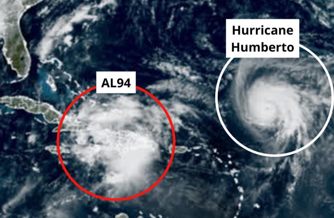 A agência meteorológica norte-americana afirmou que está monitorando de perto a trajetória do Humberto e do AL94, que pode se tornar uma depressão tropical durante o fim de semana.