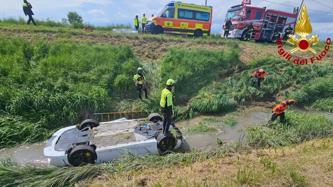 A operação de resgate mobilizou um helicóptero Drago 149 dos bombeiros, com dois mergulhadores a bordo, além de uma equipe de apoio vinda de Vicenza e um guindaste do comando dos bombeiros de Udine, que participou da retirada do veículo do canal.