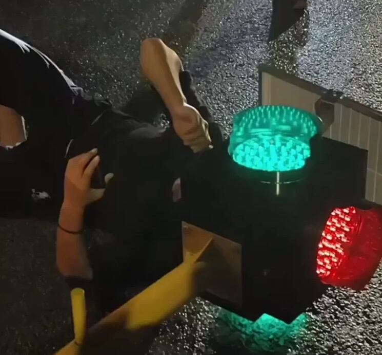 Homem fica com a cabeça presa em semáforo após acidente na China; assista