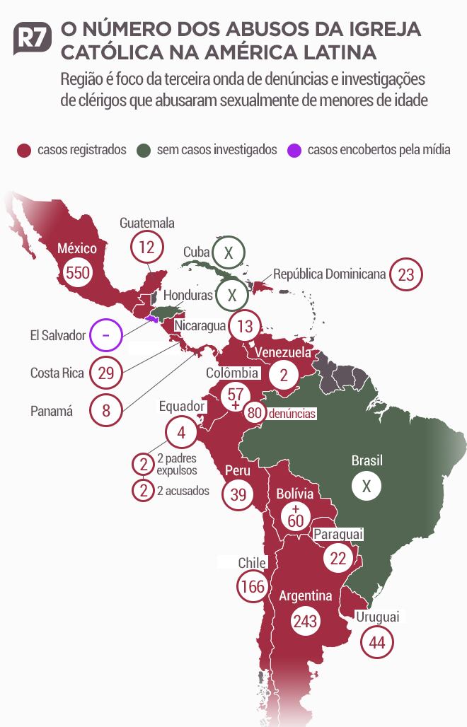Os únicos países latino americanos que oferecem ajuda às vítimas de abuso sexual na igreja, exigem investigações independentes, tomada de medidas e permitir que as vítimas tenham acesso à justiça são o Chile e a Argentina.