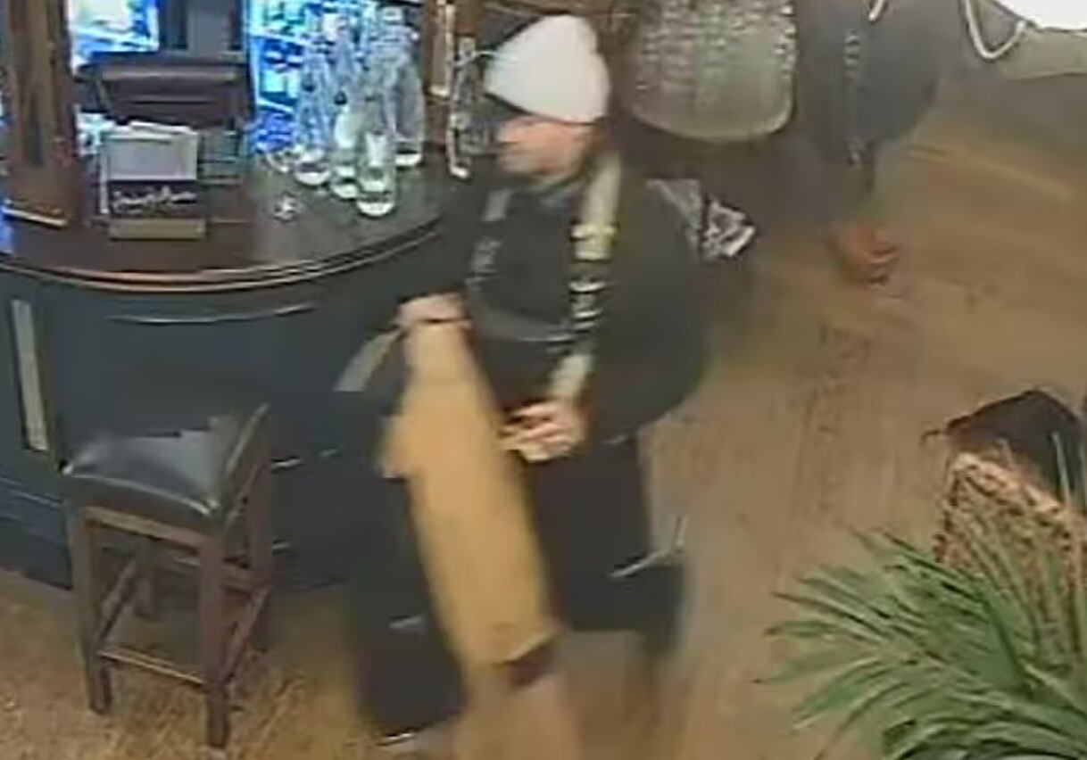 A Polícia Metropolitana divulgou imagens de câmeras de segurança que mostram um suspeito no bar no momento do roubo.