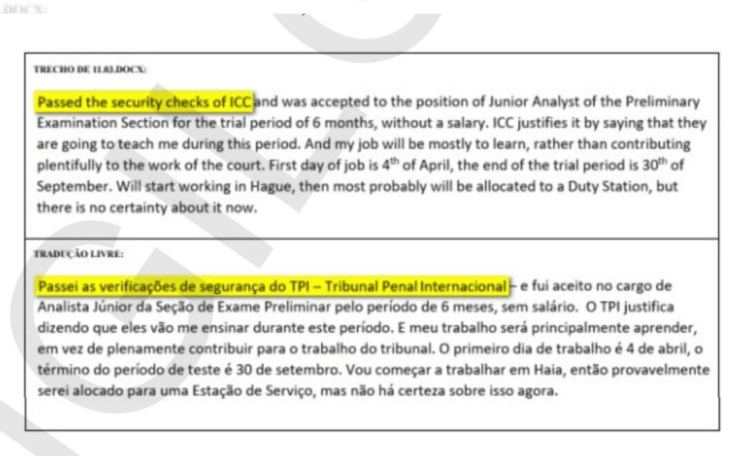 Em mensagens obtidas pela PF em celulares e computadores, Cherkasov relatava aos superiores em Moscou que estava prestes a trabalhar no tribunal e recebia pagamentos que chegavam a R$ 35 mil, transferidos por funcionários ligados ao governo russo no Brasil.