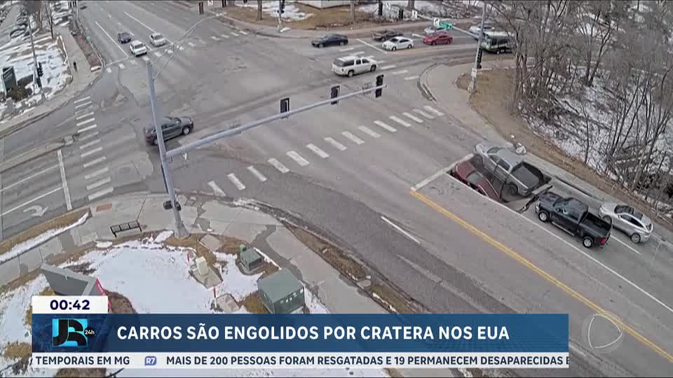 Dois carros são parcialmente engolidos por cratera nos EUA