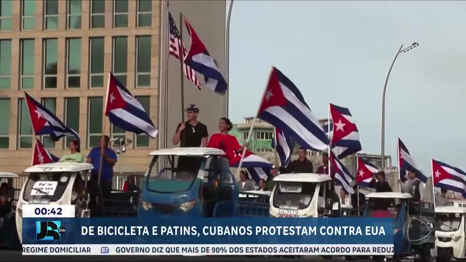 Cubanos protestam em Havana contra embargo dos EUA em meio à crise