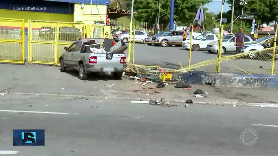 O carro invadiu um estacionamento, derrubou as grades de proteção e atropelou três pessoas