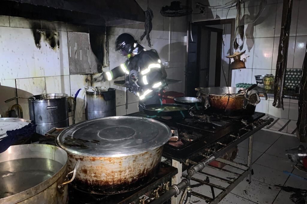 Bombeiros combatem incêndio provocado por curto circuito em restaurante
