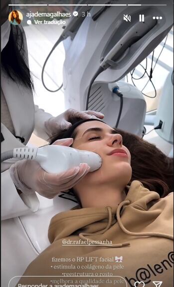Jade Magalhães, de 31 anos, compartilhou com seus seguidores, nesta segunda-feira (16), que começou um tratamento estético no rosto há uma semana. A influenciadora digital, mãe de Serena, fruto de seu casamento com Luan Santana, de 34 anos, está realizando um lift facial, que, segundo ela, “estimula o colágeno da pele, reestrutura o rosto e melhora a qualidade da pele”.