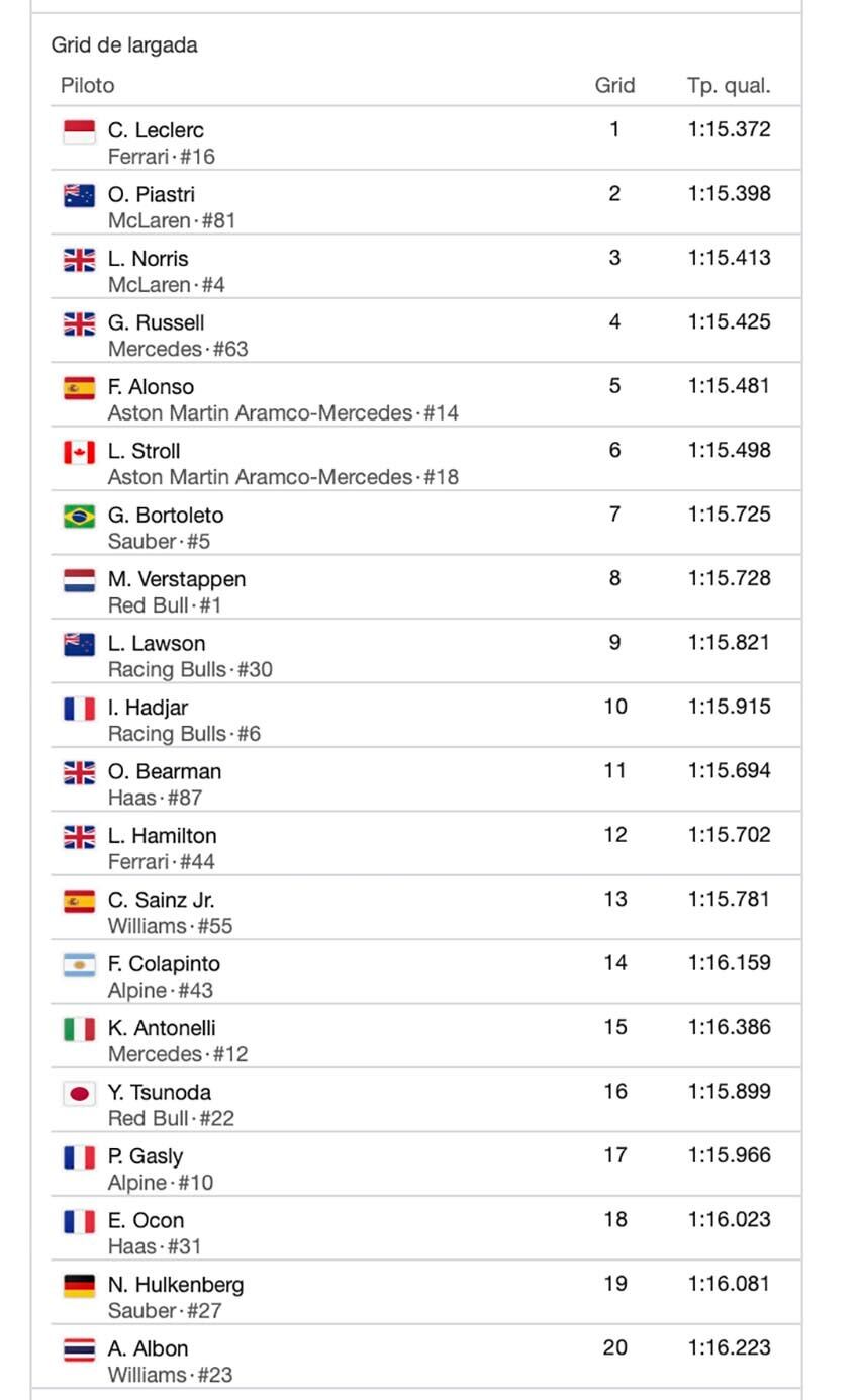 Leclerc quebra dominância da McLaren e conquista Pole; Bortoleto brilha no top 7