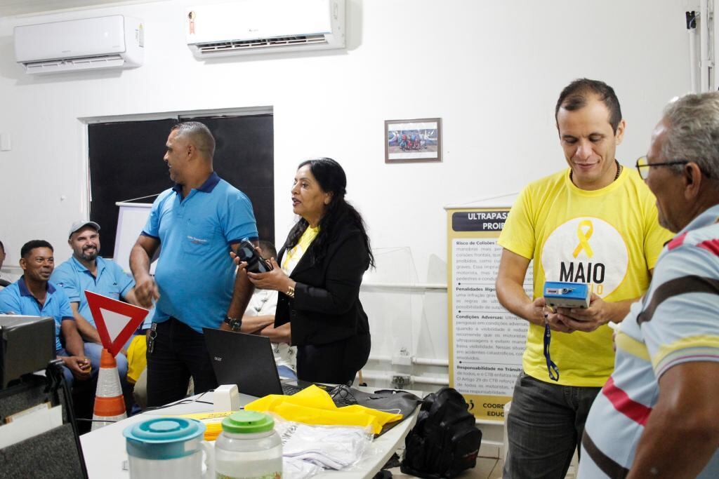 Cerca de 100 condutores de transporte coletivo da empresa União Transporte, em Várzea Grande, participaram de uma palestra educativa ministrada pela Coordenadoria de Ações Educativas de Trânsito do Detran, nesta sexta-feira (16.5), como parte da programação da campanha nacional Maio Amarelo “Desacelere, seu bem maior é a vida”. Na palestra, a servidora Zoraide Urcino reforçou a importância da direção defensiva, especialmente em veículos de grande porte como o de transporte coletivo; bem como os cuidados com a segurança do transporte, embarque e desembarque dos passageiros, além de questões comumente presenciadas no dia a dia do trânsito, como a imprudência e o excesso de velocidade para a via, que acarretam em diversos sinistros de trânsito.