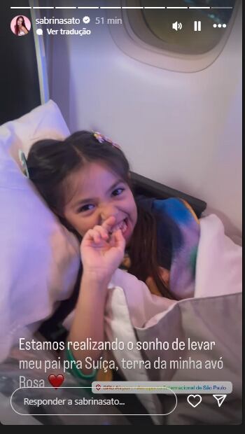 Sabrina Sato e Nicolas Prattes embarcaram no Aeroporto Internacional de São Paulo, em Guarulhos, com Zoe, de seis anos, para férias na Suiça, nesta quinta-feira (3). Os pais da apresentadora, Kika Sato e Omar Rahal, também estavam presentes. A pequena, que é fruto do relacionamento que a atriz teve com Duda Nagle, estava no colo do ator, carregando uma pelúcia do personagem Stitch. Já a apresentadora levava uma bolsa Birkin, da Hermès, estimada em mais de R$ 100 mil. Já no interior do aviaão, sabrina gravou a filha e perguntou onde ela estava indo, foi então, que revelou o destino e disse que a bisavó de Zoe, é natural de lá, dona Rosa. Confira clique abaixo: