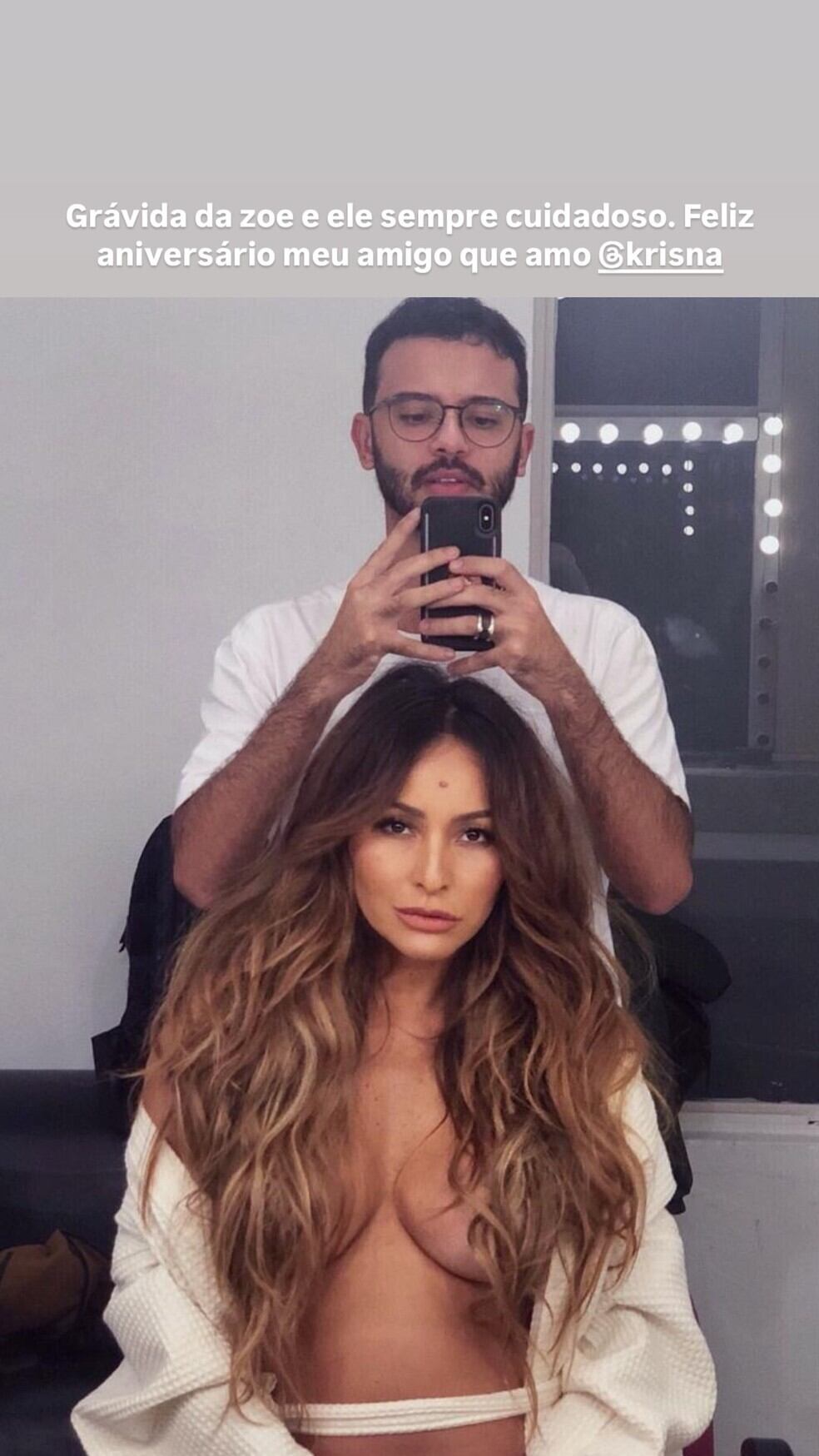 Sabrina Sato, de 44 anos, abriu o baú de memórias neste sábado (3), para comemorar o aniversário de seu maquiador e hair stylist, Krisna. Para a homenagem, a modelo e apresentadora compartilhou uma foto de mais de seis anos atrás, quando estava grávida de sua filha primogênita, Zoe, de 6 anos. Na imagem, Sato aparece toda produzida, com o topless coberto pelo cabelão. “Grávida da Zoe e ele sempre cuidadoso. Feliz aniversário, meu amigo que amo, Krisna”, explicou.
