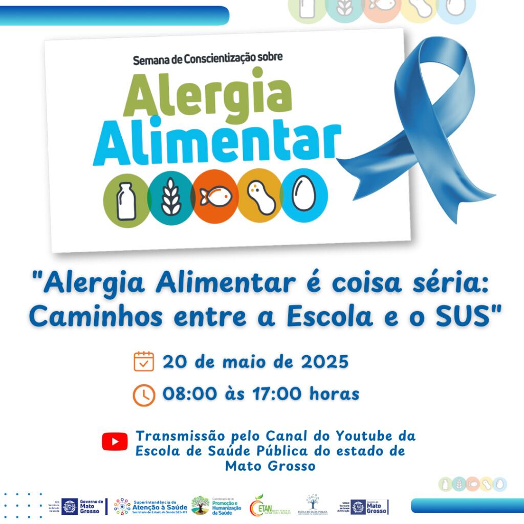 A Secretaria de Estado de Saúde (SES) e a Secretaria de Estado de Educação (Seduc) realizam o webinário “Alergia Alimentar é Coisa Séria: Caminhos entre a Escola e o SUS”, nesta terça-feira (20.5), das 8h às 17h, voltado aos profissionais da saúde e da educação, famílias e pessoas que vivem com alergia alimentar.