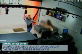 Imagens flagraram a ação de dois criminosos, que fugiram do local de moto