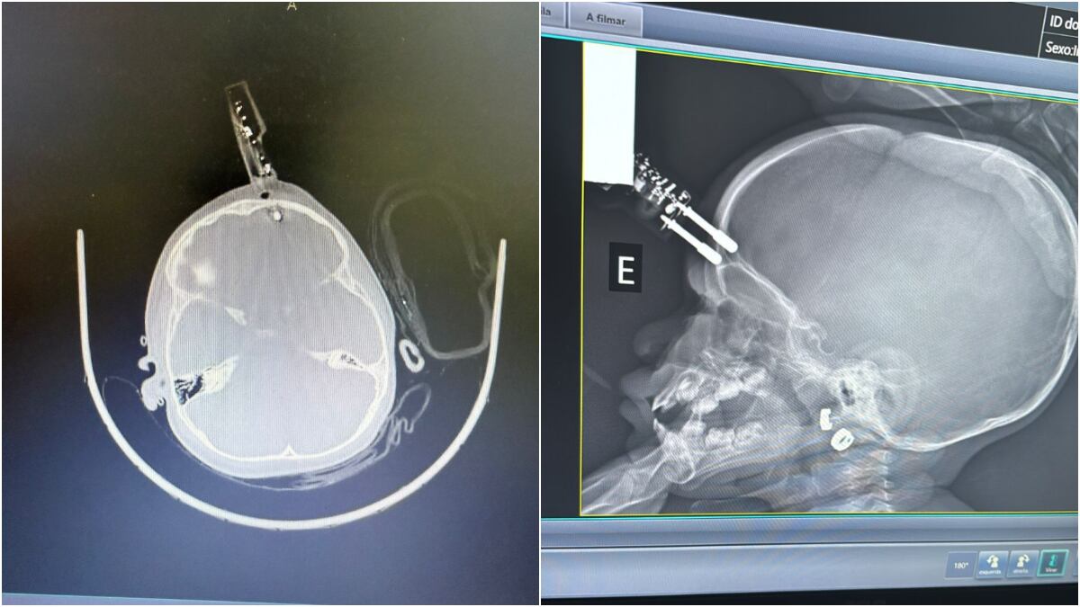 “A tomografia mostrou que o pino estava machucando o cérebro, atingindo a ponta do lobo frontal”, explicou. Ele destacou que, nessa idade, o osso do crânio é muito fino, o que facilita perfurações em quedas.