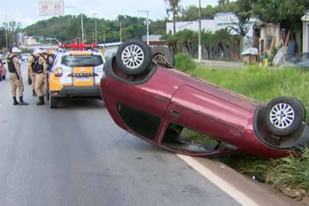 Motorista perde controle e capota carro no Anel Rodoviário de Belo Horizonte