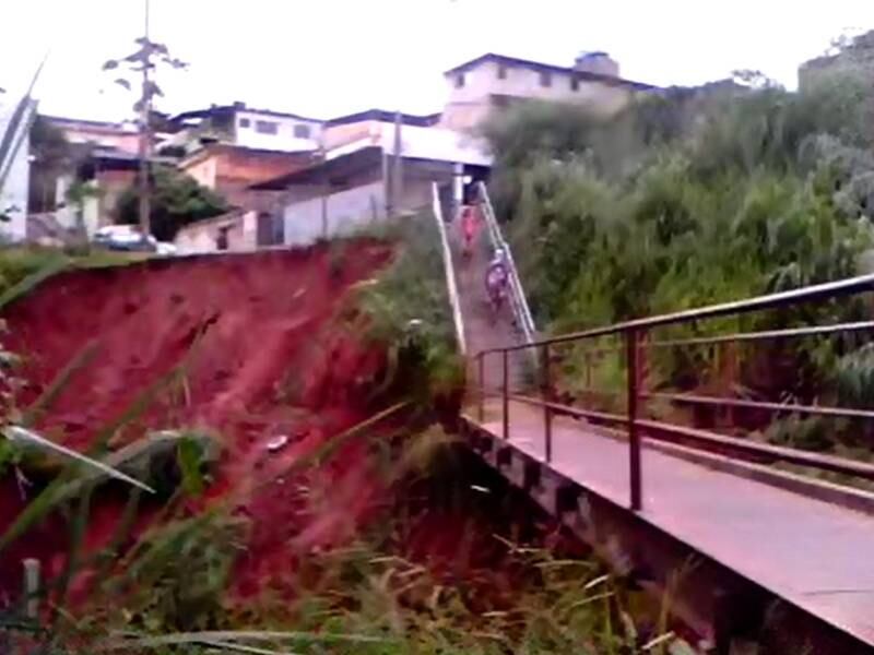 O desmoronamento de um barranco por conta da chuva dos últimos dias tem tirado o sossego de moradores do bairro Marajó, na região oeste de Belo Horizonte. Uma passarela que liga o bairro ao vizinho Havaí teve a estrutura comprometida e ameaça desabar.