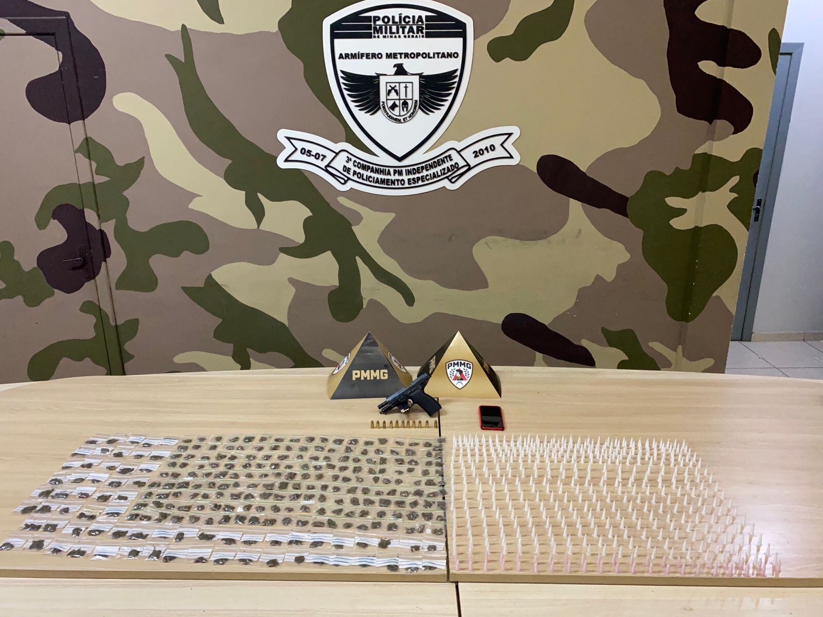 No entanto, os PMs encontraram uma pistola calibre 9 milímetros escondida na casa, assim como várias porções de drogas. O rapaz ainda indicou onde estava escondida a bomba, enterrada em um terreno perto.