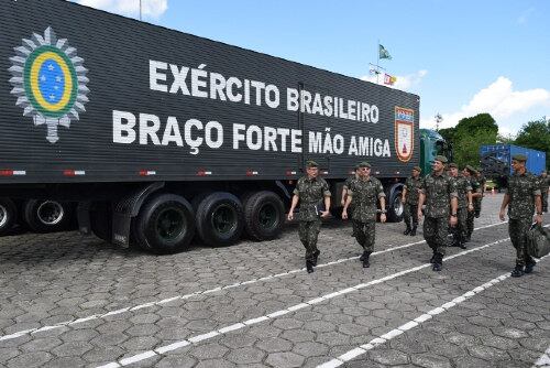 Imagem com frase ‘braço forte, mão leve’ escrita em caminhão do Exército é versão adulterada de foto real