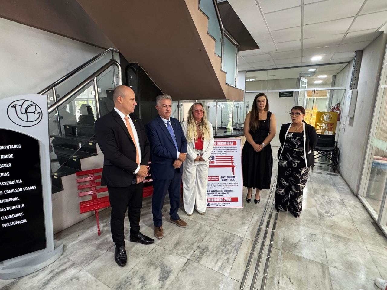 Banco Vermelho – A iniciativa é um símbolo internacional de enfrentamento ao feminicídio e à violência de gênero. Instalados em espaços públicos, os bancos vermelhos representam a memória de mulheres vítimas de feminicídio e funcionam como alerta permanente para a sociedade. Além disso, divulgam o número 180, canal nacional de denúncia e orientação para mulheres em situação de violência.