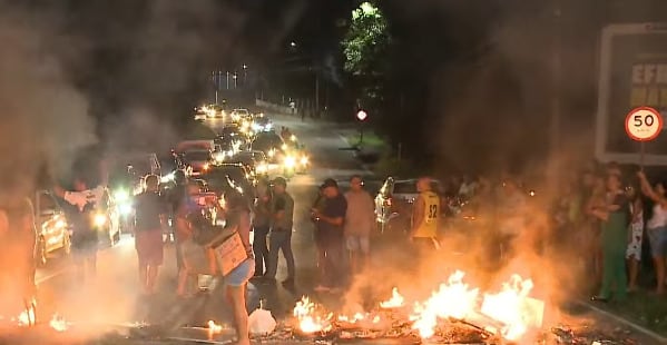 Os protestantes se reuniram em um ponto da descida e fizeram a queima de materiais, interditando parte da via.