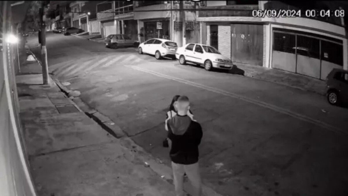 O vídeo de um assalto viralizou nas redes sociais nesta semana. O crime ocorreu na última sexta-feira (6). A gravação feita por uma câmera de segurança mostra um casal parado em uma calçada, em seguida, dois suspeitos se aproximam em uma moto, neste momento o namorado da jovem sai correndo e a deixa sozinha. Os assaltantes parecem um pouco incrédulos com a situação, mas ainda assim levar o celular da jovem.