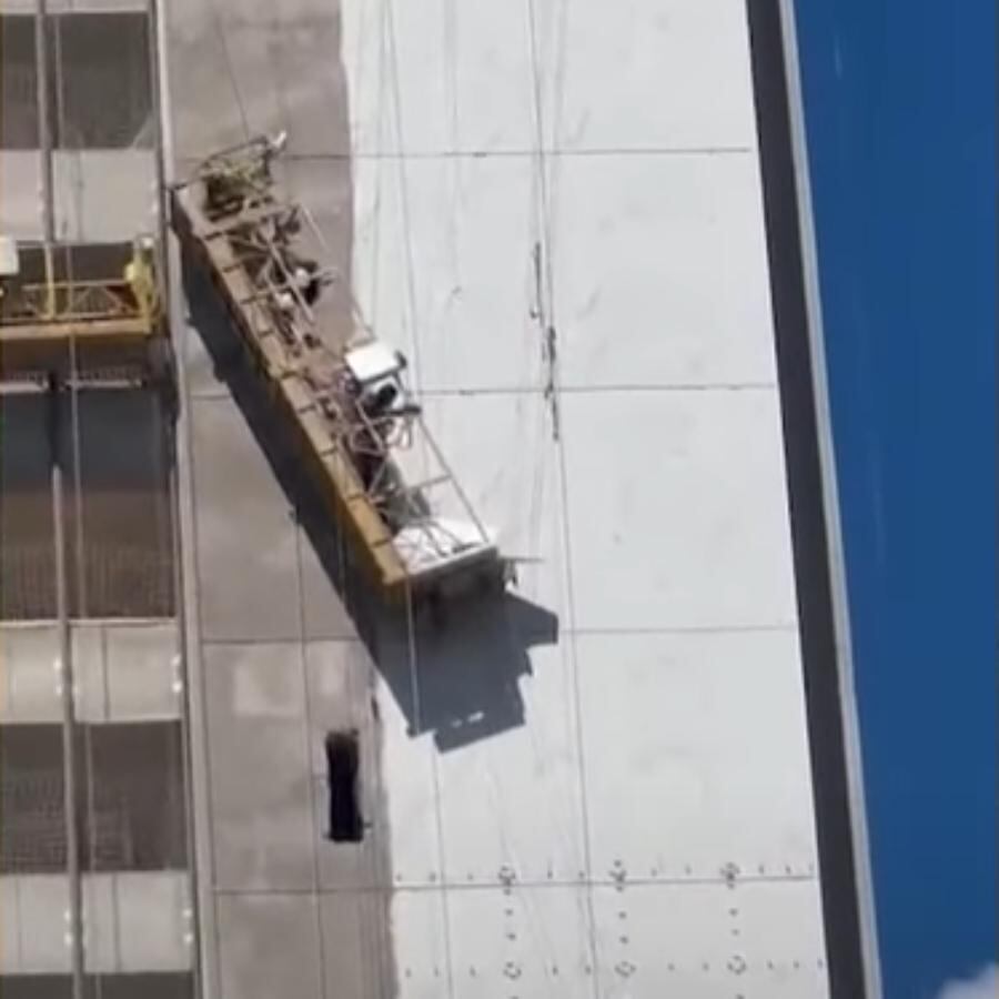 Trabalhadores ficam pendurados a 40 metros de altura após andaime arrebentar