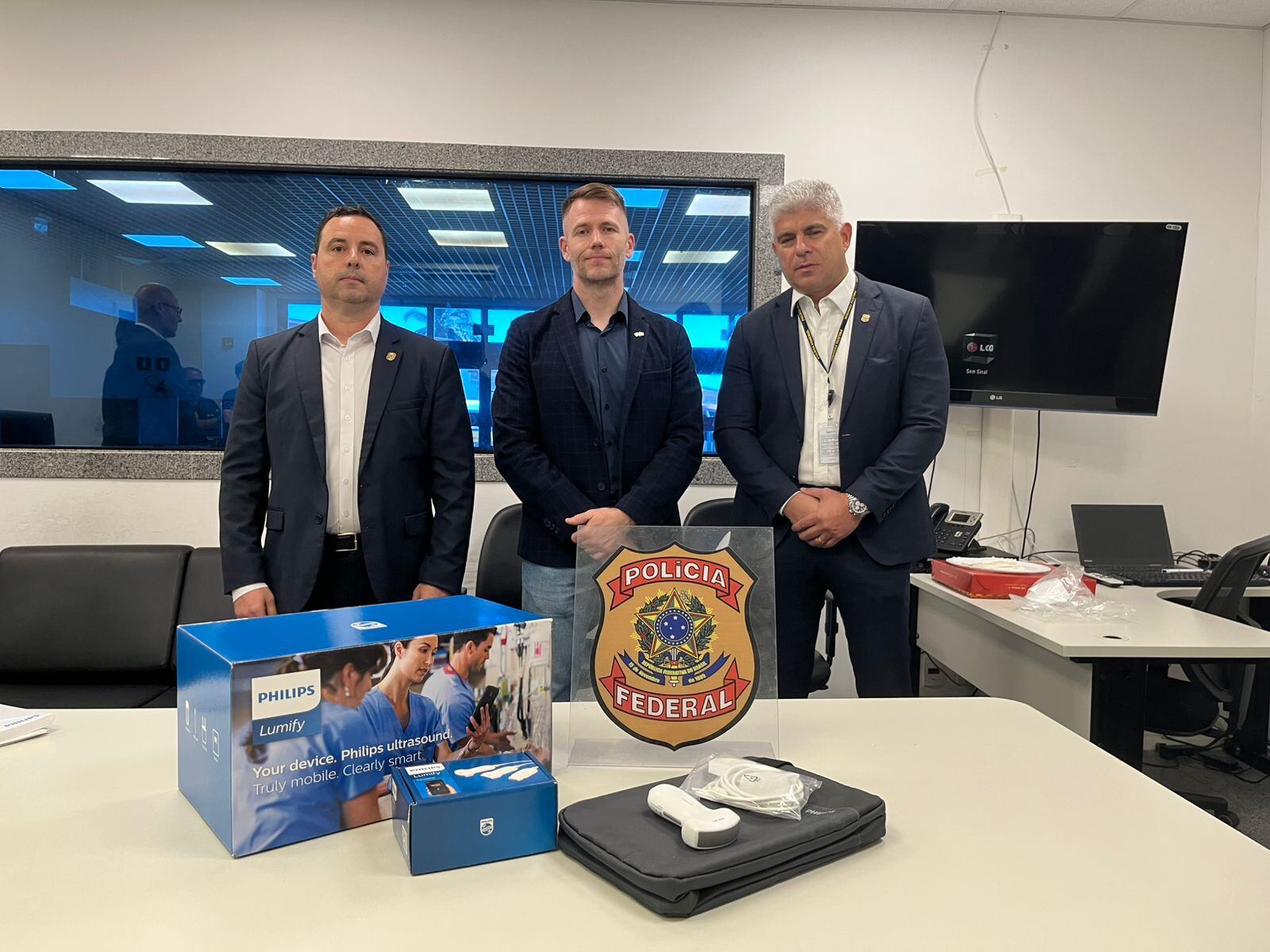 A Embaixada da França doou um scanner corporal à Polícia Federal brasileira para uso no aeroporto internacional de Salvador