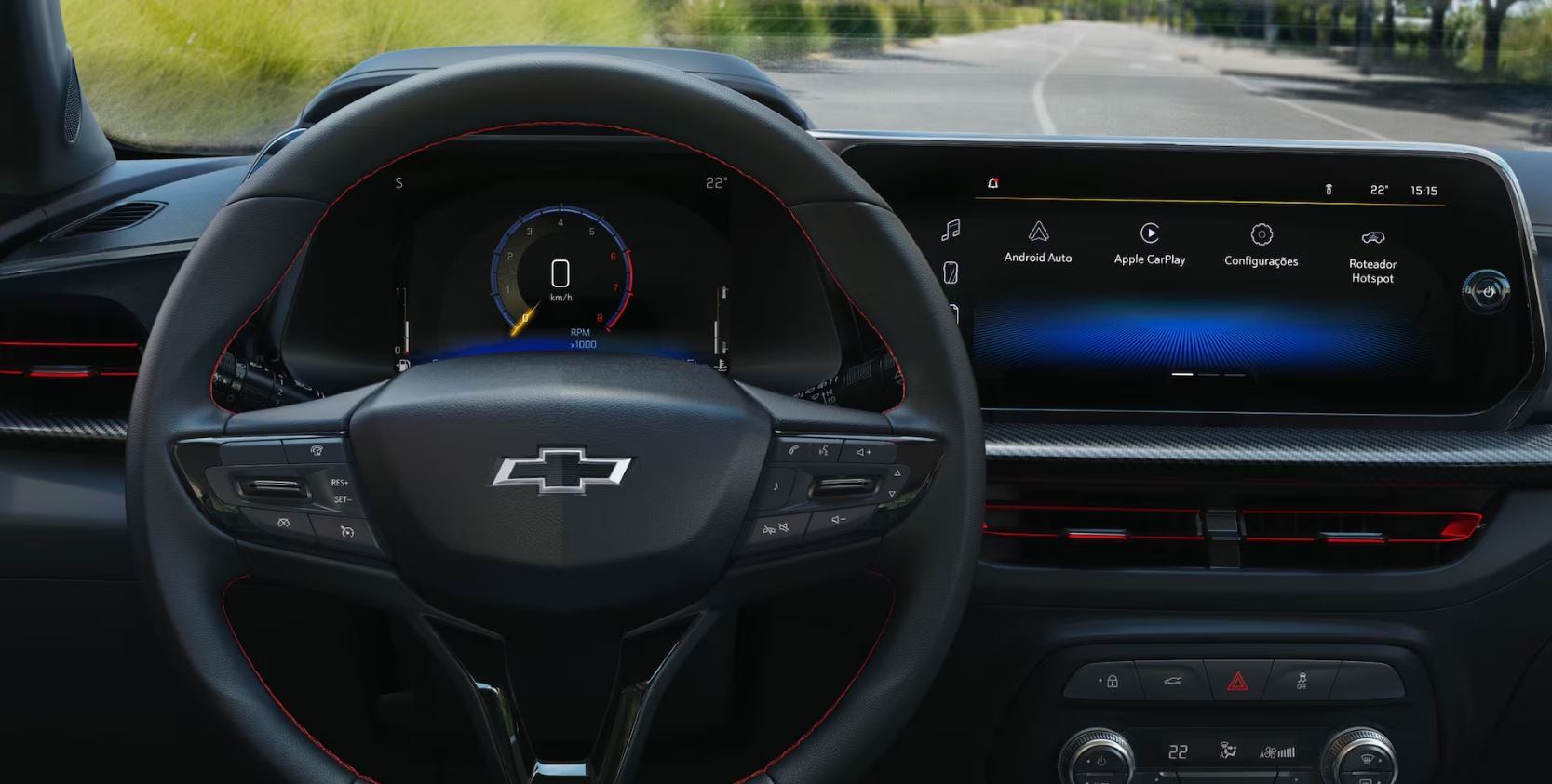 Já o interior recebeu o novo padrão de telas da GM, trazendo um cluster ao lado da central multimídia digital flutuante de 11 polegadas. O painel tem 8 polegadas e é o mesmo usado pela Spin por exemplo. A GM também melhorou o sistema de ar condicionado e chave presencial melhorando o conforto a bordo, segundo a marca.