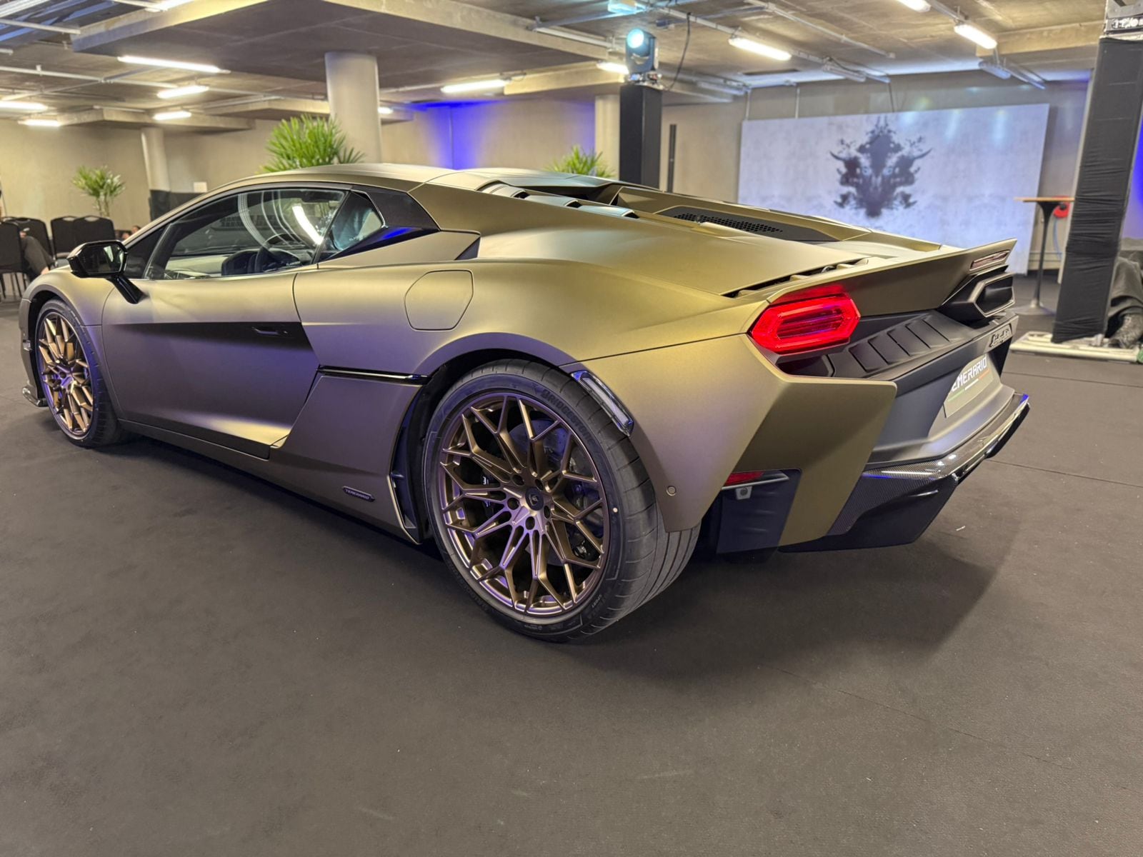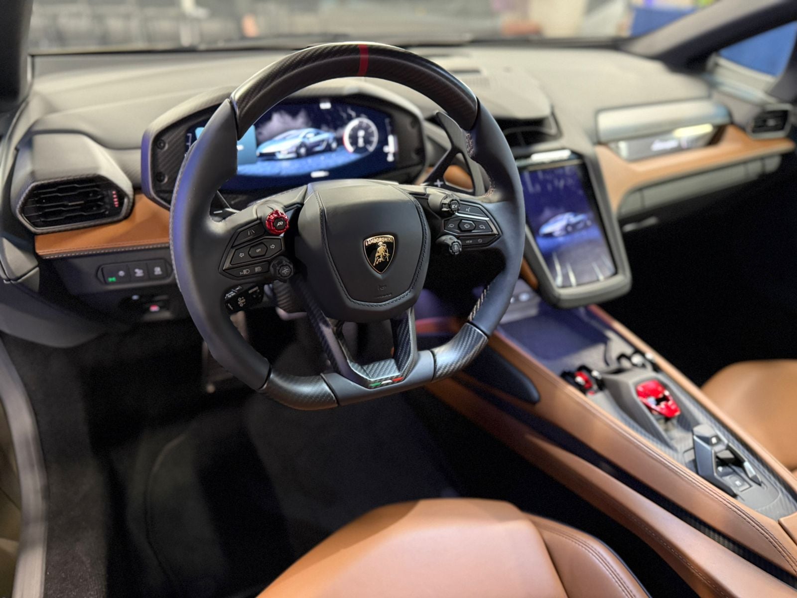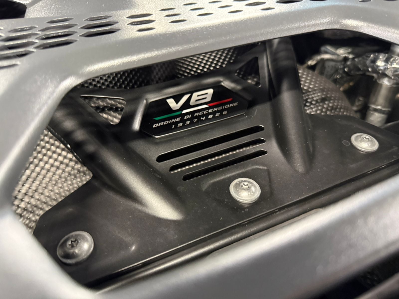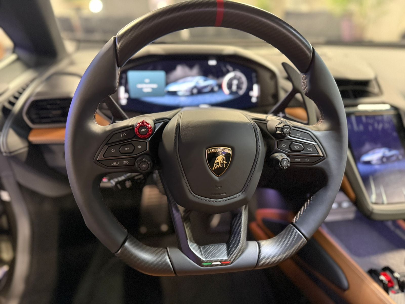 O novo V8 4.0 biturbo merece atenção especial. Capaz de atingir 10.000 rpm, ele entrega 800 cv e 730 Nm, tornando-se o único motor V8 de produção com foco em superesportivo a operar nessa faixa de rotação. A Lamborghini adotou soluções tradicionalmente vistas em modelos de competição: virabrequim flat-plane, que melhora o fluxo dos gases e produz um som mais agudo; bielas de titânio, que reduzem massa rotativa; e bloco de alumínio A357+Cu, que combina leveza com enorme resistência. A arquitetura inclui ainda cárter seco com cinco bombas, cabeçotes desenvolvidos por impressão 3D para otimização do fluxo térmico e resistência à detonação, e injeção direta a 350 bar.