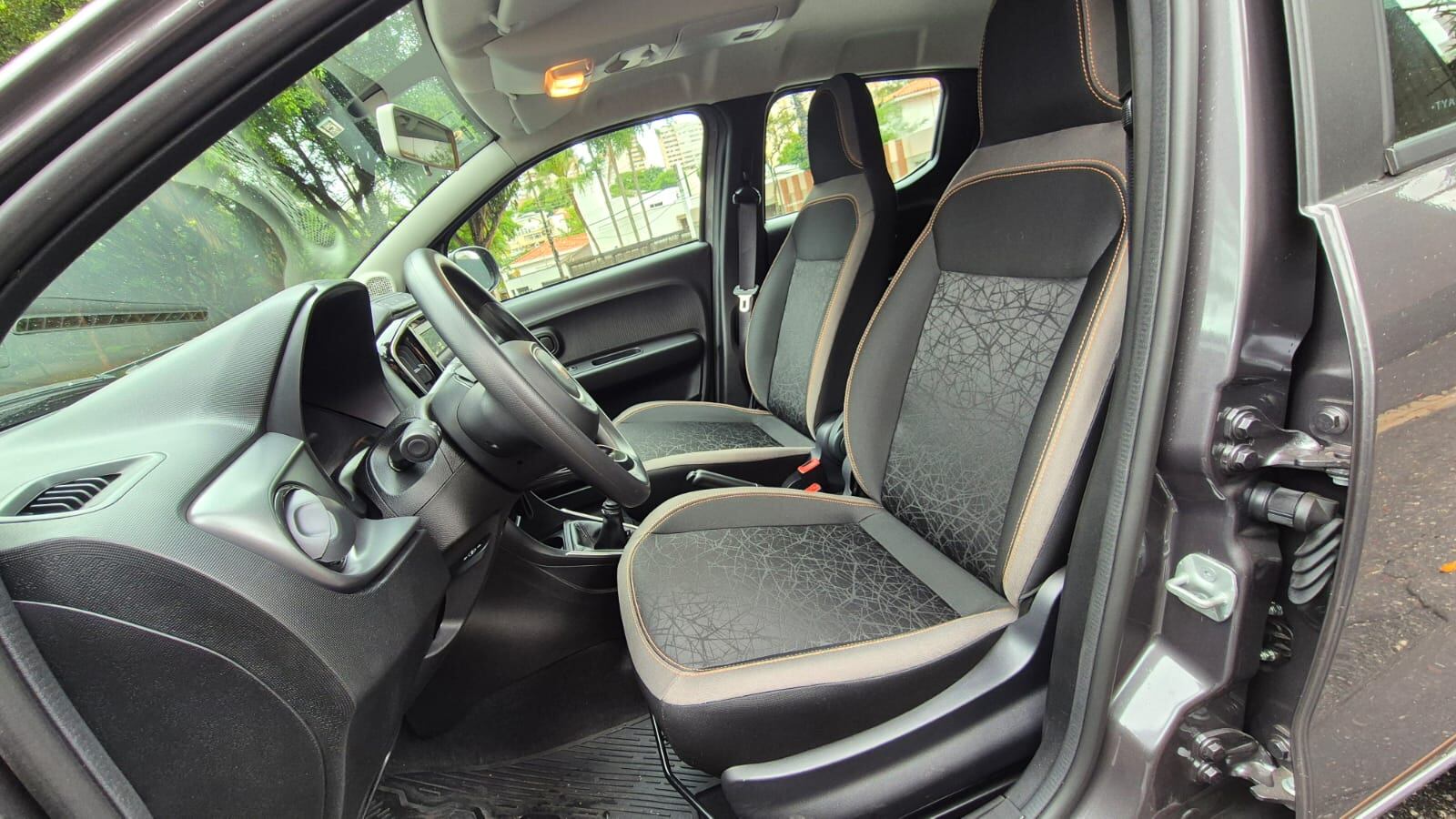 A diferença aparece com clareza no pacote oferecido. O Renault Kwid Outsider traz central multimídia de 8 polegadas, câmera de ré, quatro airbags, controles de estabilidade e assistência de partida em rampa, sistema Start & Stop, entrada USB-C, computador de bordo e duas portas USB dianteiras.