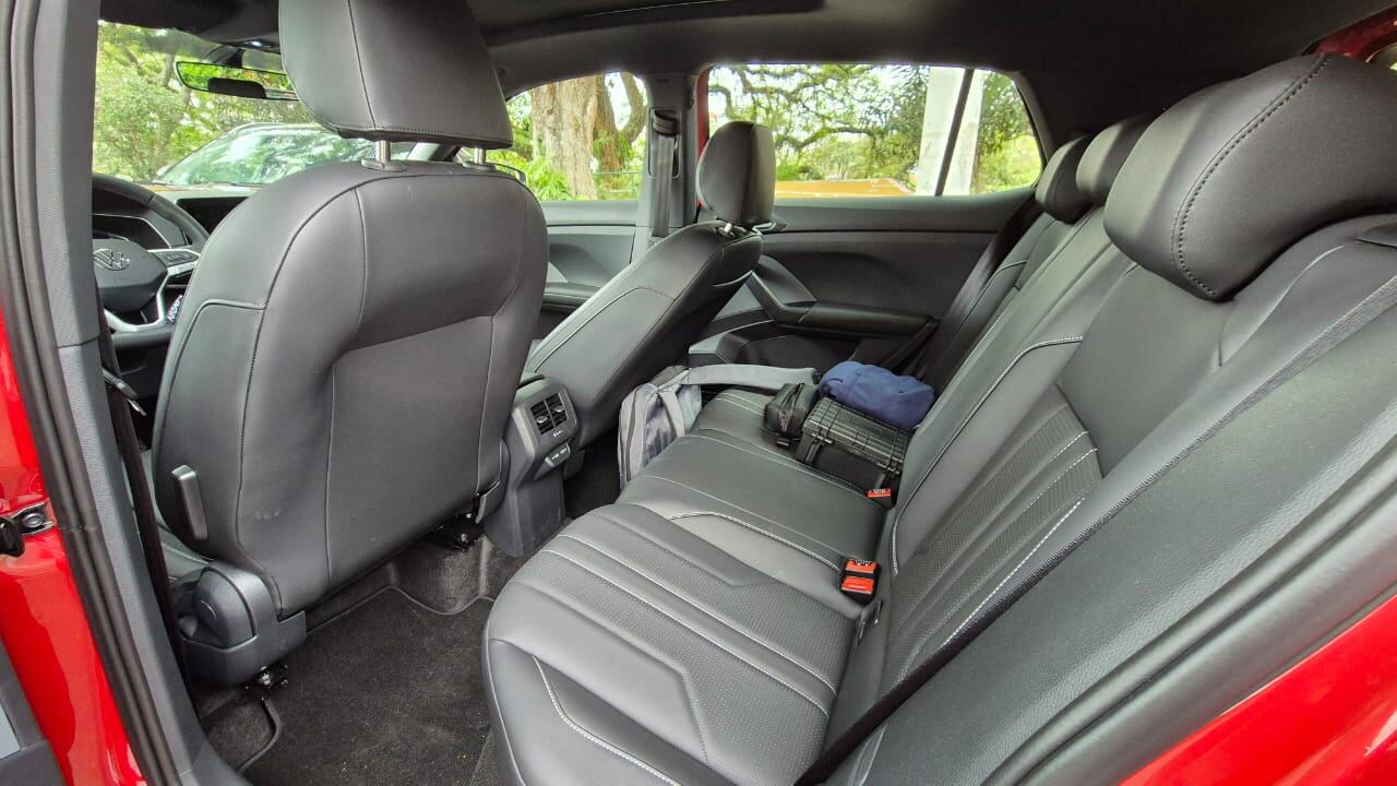 O T-Cross é menor, com 4,21 m de comprimento, 1,76 m de largura e 1,57 m de altura, mas mantém entre-eixos idêntico de 2,65 m e oferece 373 litros de bagagem. A diferença favorece o Kicks em espaço interno e capacidade de carga.