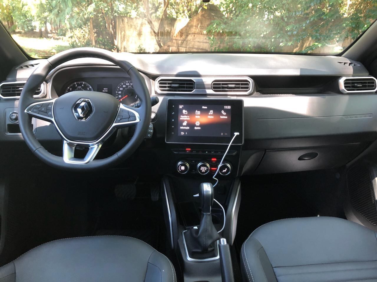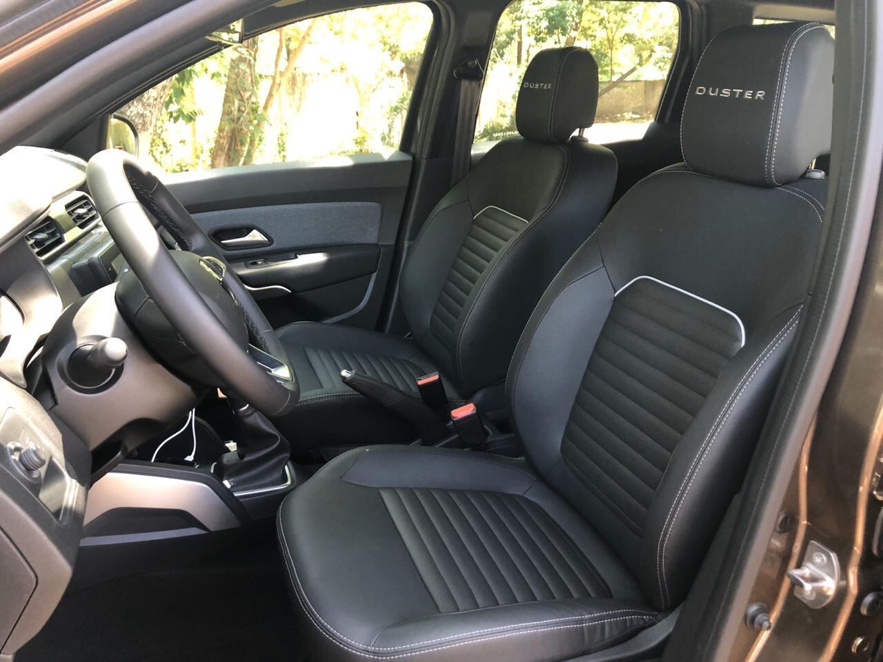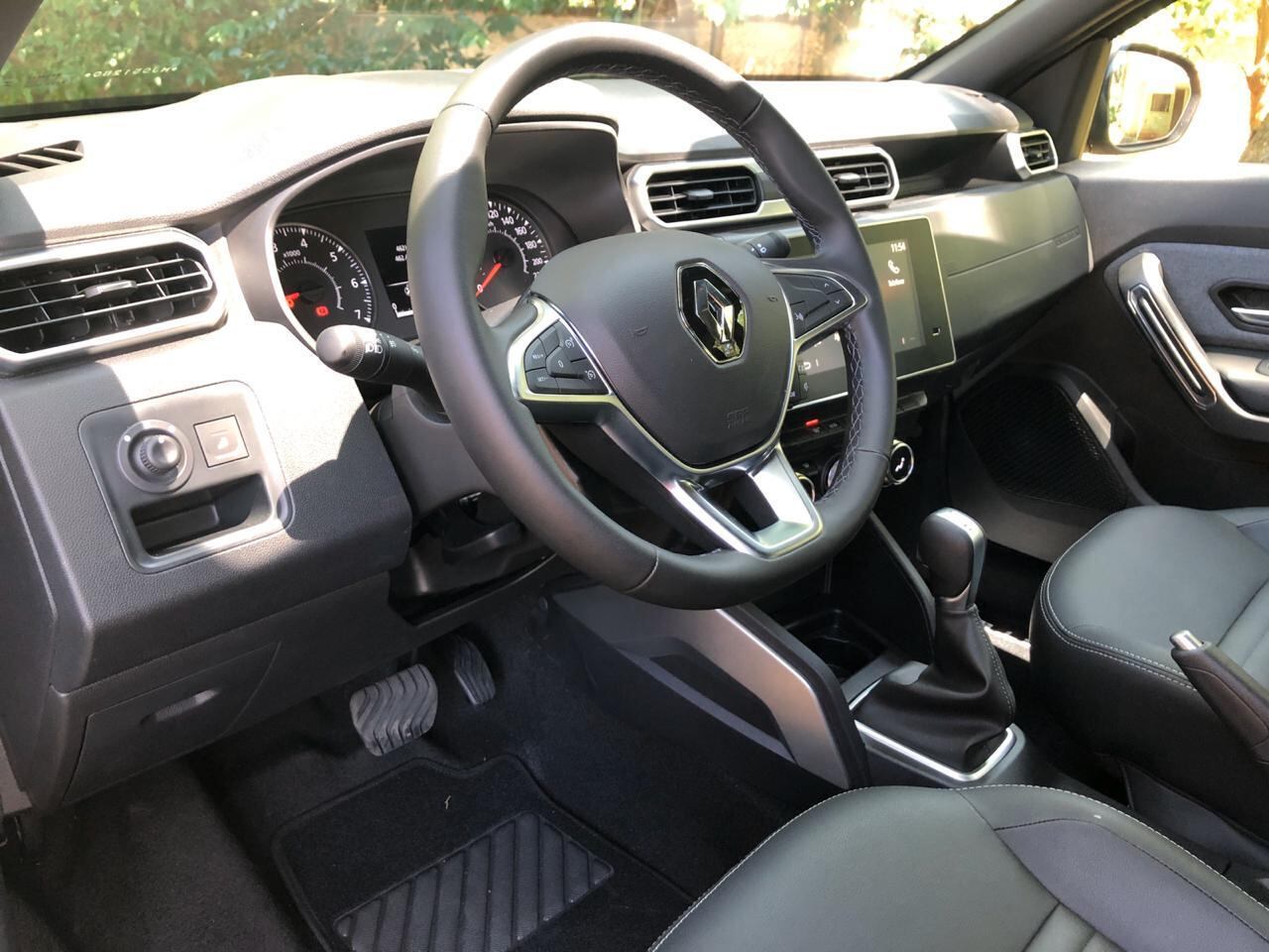 Por dentro o Duster traz painel totalmente novo mantendo o volante usado em outros produtos da marca Renault. As linhas são retas e os controles são voltados para o motorista. Os bancos são novos e redesenhados para maior conforto.