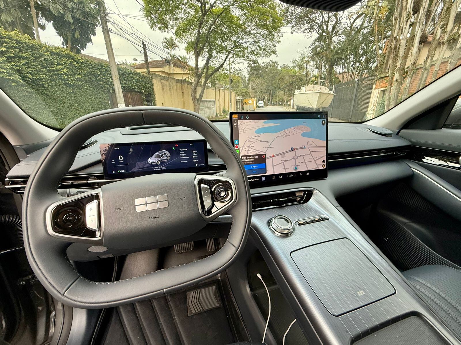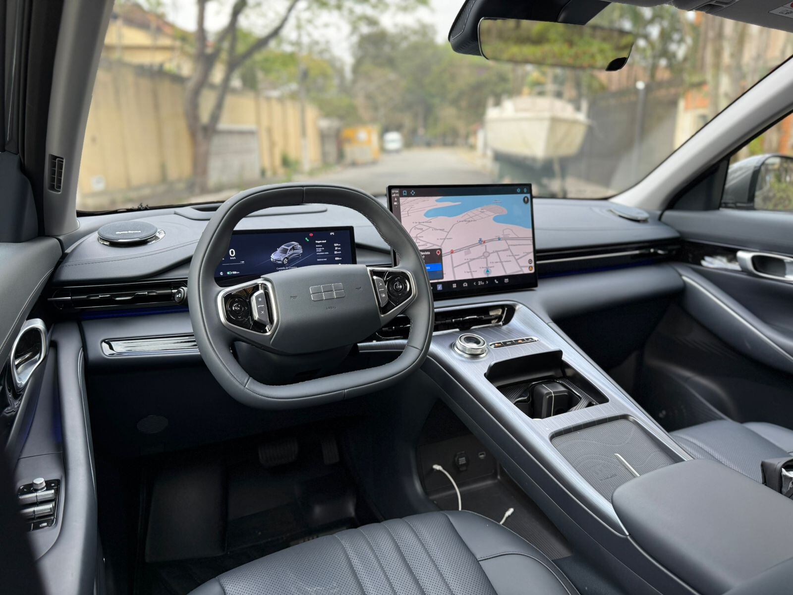 O EX5 é vendido em duas versões: Pro e Max sendo a segunda analisada neste artigo. O carro tem pacote ADAS completo e bem calibrado, bancos em couro incluindo o acabamento das portas e outros itens como faróis LED direcionais, bancos com massagem, iluminação interna, som premium, 360º camera, HUD de 13,8” e até filtro N95.