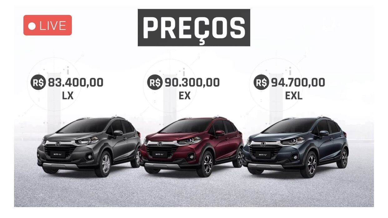 No portfólio de crossovers da Honda o WR-V corresponde a 22% das vendas. São três versões na linha 2021 do WR-V: